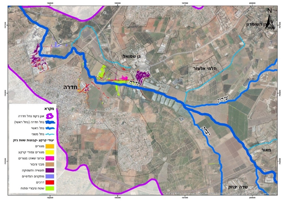 הסיווג לקבוצות שימושים נעשה בהתאם להוראות שבלשונית 1 בנספח התכנוני (קבוצות שוות נזק), חישוב פוטנציאל הנזק ייעשה באמצעות הטבלה המופיעה בלשונית 5 של הנספח 'תכניות מפורטות', עבר כל אחת מהסתברויות ההצפה. תכניות מפורטות עם ייעוד של שטחים חקלאיים יחושבו בלשונית 5-1.
